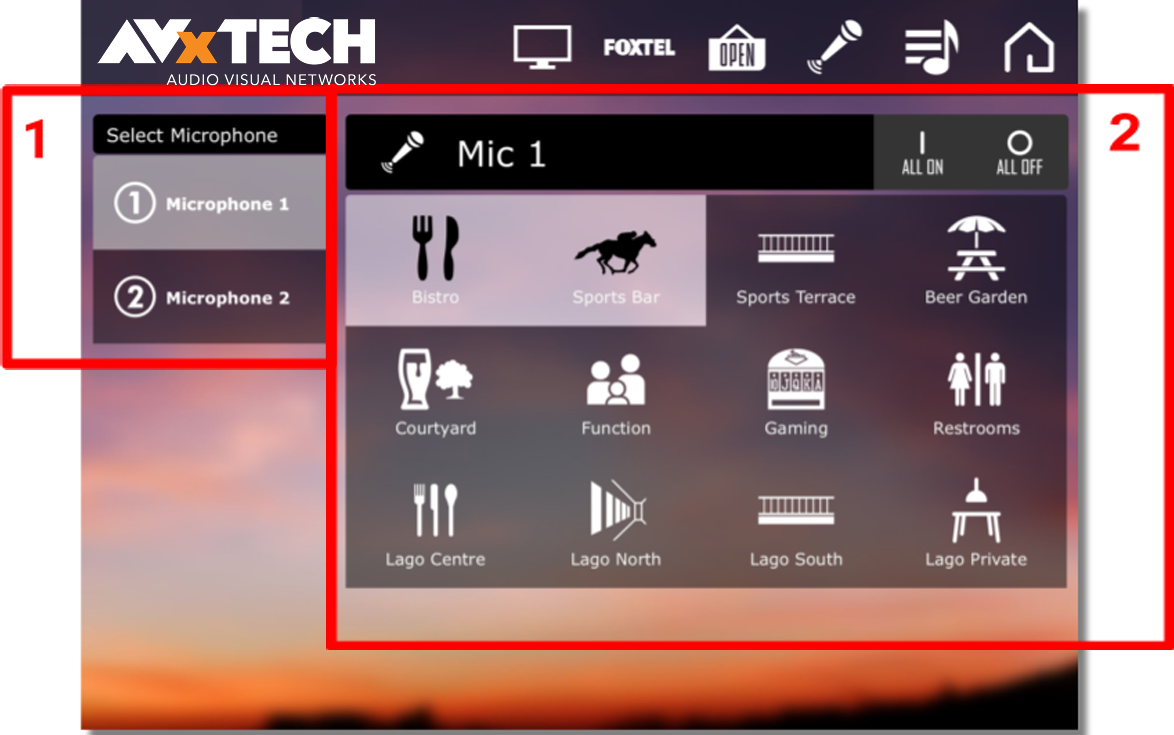 Tap the Zones where the microphone should be heard.