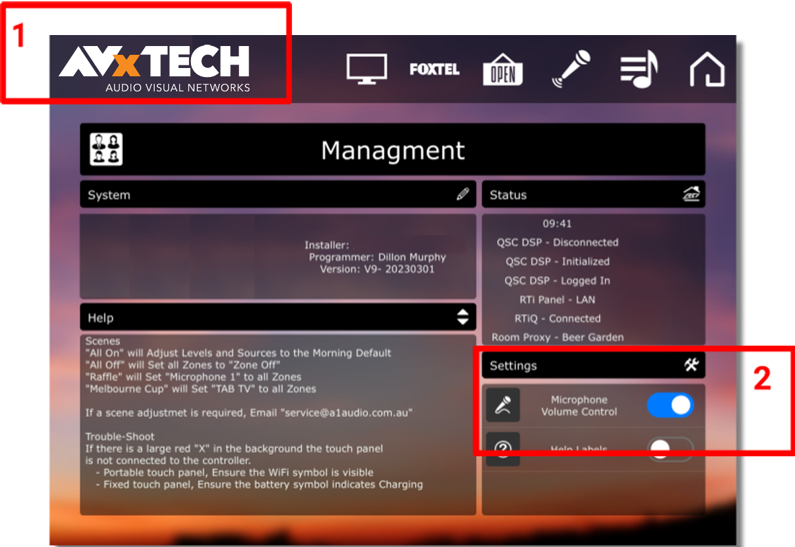 β Management Page & Microphone Level Controls