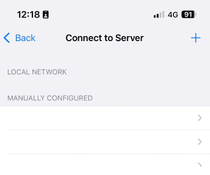 Tap the + button to add a new server address.