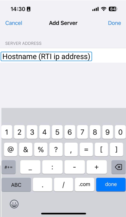 Enter the IP address of the RTI server on the house network: