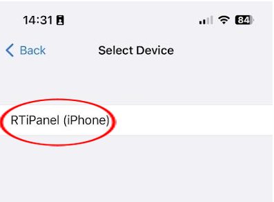 Select the iPhone device to connect to the AV control server.